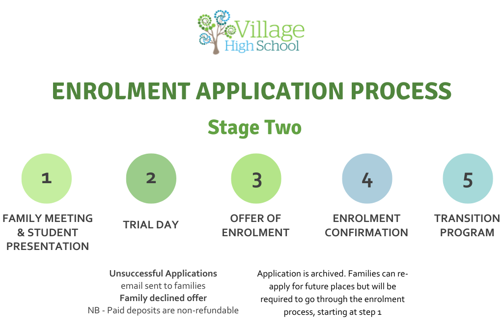 In order to be considered for enrolment at Village High School, the following criteria must be met:
