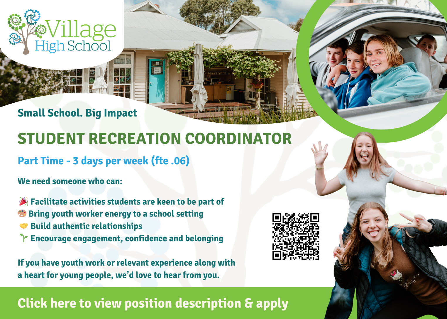 We are often looking for sparky people to join our teams at both our Junior (Yrs 7-9) and Senior (Yrs 10-12) campuses.